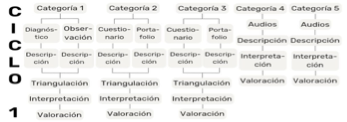 Complementariamente, se debe definir a que ciclo de análisis e interpretación de resultados pertenece cada una de estas cinco categorías partiendo nuevamente de los objetivos específicos esta investigación junto con los instrumentos de recolección de datos que se aplicaron.