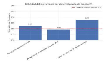 Fig. 1: Resultados obtenidos tras aplicar prueba Alfa de Cronbach para medir confiabilidad de la encuesta aplicada a padres y agentes educativos sobre factores del entorno familiar.