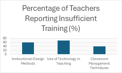 The study also found that a shortage of teacher training is among the major obstacles to effective instructional design. Sixty percent of educators reported that they were receiving inadequate training in instructional design methods, and 70% felt unprepared to integrate technology into their teaching practices. A lack of such professional preparation holds teachers back from rising to evolving pedagogical challenges and erodes their confidence to put innovative teaching methods into practice.