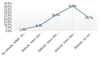 Estos resultados evidencian que una gran proporción de los participantes (63%, sumando "influencia significativa" y "factor determinante") reconoce la importancia de integrar la sostenibilidad en la toma de decisiones estratégicas. Sin embargo, un grupo reducido (10.9%, combinando "influencia mínima" y "no debería influir") aún minimiza su relevancia, lo que podría reflejar diferentes niveles de concienciación o prioridades dentro del entorno empresarial.