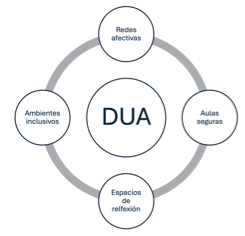 Es por ello, que desde el Diseño Universal del Aprendizaje (DUA) se reconoce como necesario trabajar todos los elementos emocionales que puedan no solo mejorar las condiciones emocionales del educando, sino que además aportan para un mejor aprendizaje, de acuerdo con Márquez (2021) se trata de proporcionar valores encaminados a reconocer al otro como parte de un contexto social donde sus derechos y deberes deben ser respetados incluso promovidos por parte de toda la comunidad educativa. Desde una perspectiva argumentativa es posible establecer que las relaciones humanas que se entretejen al interior de la convivencia escolar pueden estar mediadas por “redes afectivas y aulas seguras” en ella se inicia por lo planteado por Ochoa et al. (2018) buscando promover la tolerancia y un ambiente de participación, donde cada estudiante tiene un liderazgo significativo que lo ayuda sentirse parte del proceso formativo y de la convivencia de su entorno.